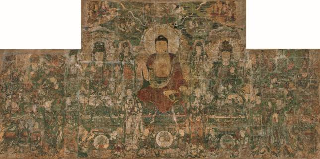稷山兴化寺两铺元代佛教壁画:中殿《过去七佛佛会图》,藏于故宫博物院,后殿《弥勒佛佛会图》藏于加拿大多伦多皇家安大略省博物馆。