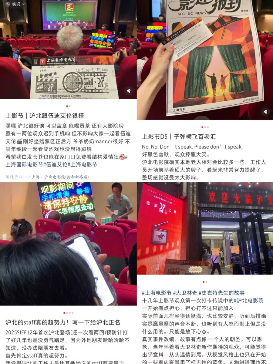无需讳言,选沪北电影院看电影节,在小红书上是有讨论度的。和阿姨爷叔们一起看展映片什么感受?在气氛不那么文艺的影院参与电影节什么感受?年轻网友众说纷纭。