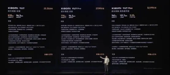 6月26日夜晚,小米汽车携旗下首款SUV车型——小米YU7震撼登场。新车精心推出标准版、Pro、Max三个版本,售价依次为25.35万元、27.99万元、32.99万元。这一次,小米汽车毫不避讳地将特斯拉Model Y视为强劲对手,雷军直言:“起售价比Model Y低1万元,我们就是要给大家更实在的价格。”