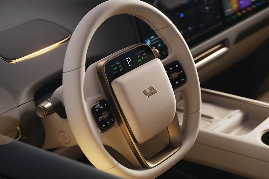从此次官方发布的图片来看,该车依旧沿用理想家族式设计语言,三辐式多功能方向盘搭配由大尺寸中控屏+副驾娱乐屏组成的一体式连屏,整体尺寸或有望进一步加大。同时,该车中控台T字区域配备双手机无线充电、双杯架以及储物槽等,提升储物空间。与此同时,其副驾座椅上配备老板键,更便于驾驶员操控副驾驶座椅调整。
