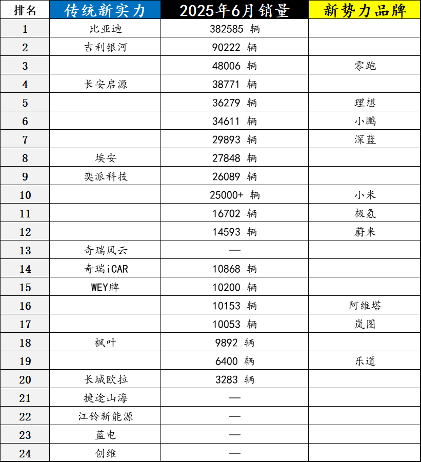 奕派科技其实是6月底才成立的新公司,涵盖了东风风神、东风奕派和东风纳米三家品牌的销量。但其实东风风神是有燃油车在卖的,所以这次把奕派科技统计进来有一点“作弊”行为。但其实也不妨,毕竟东风风神也在转型新能源,并且燃油车销量也不多了。