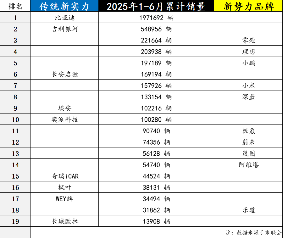 无论如何,从今年上半年的新能源品牌累计销量来看,无论是传统造车新实力,还是新势力品牌,基本上可以放在一起点评点评。新势力品牌的光环已经褪去,传统造车新实力的努力还在继续,现在还分不清谁强谁弱。