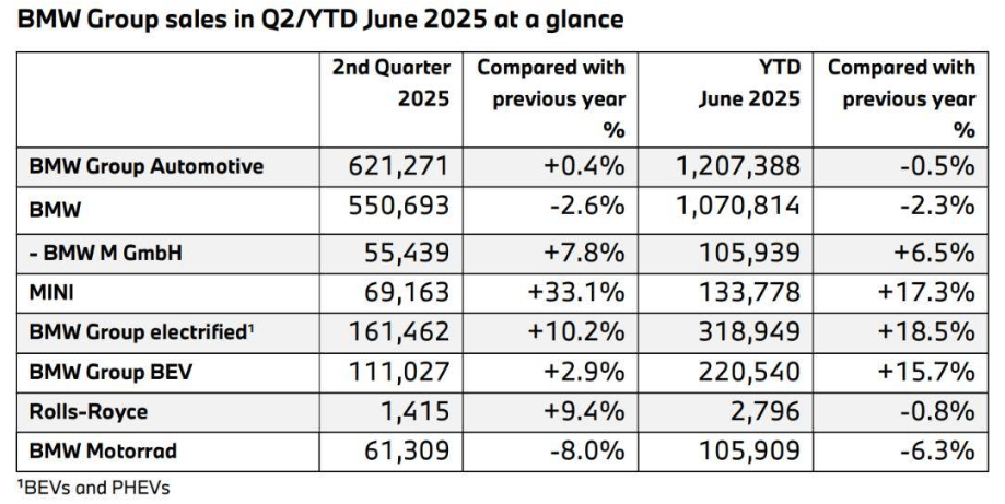 值得注意的是,2025年上半年,宝马集团在电动车板块(含纯电动+插电混动)的表现可圈可点。