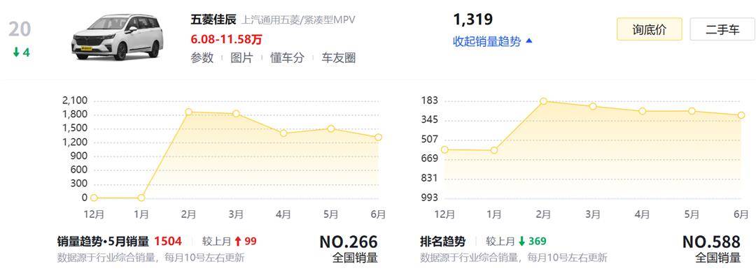 关于星光730,估计更多人盲猜的价格就是10万元左右,但从目前产品释放出的信息来看,大概率是要比五菱佳辰、凯捷定位更高,至于最终会不会给到一个很大的惊喜,值得期待。五菱的MPV曾经风光过,但现在来看日子也不好过,五菱凯捷很久没有更新了,不排除停产的可能性。五菱佳辰今年的销量相比去年同期也下滑了不少,月均也就是一两千台,就连神车五菱宏光的销量都较此前明显下滑。说到原因,不得不提价格战的因素,比亚迪宋MAX、传祺M6如今终端优惠很高,精致程度和智能化,远比凯捷、佳辰更好,所以潜在用户宁愿再添点钱。