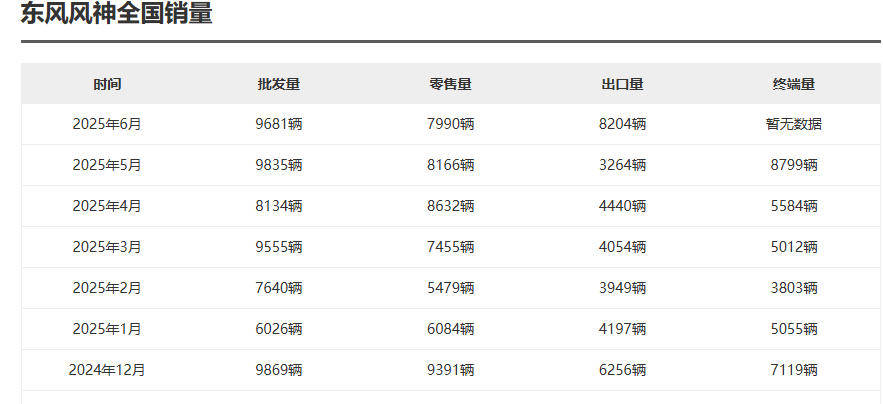 如今2025年过半,第三方平台所披露的东风风神2025销量也已经出炉,邓留超这半年的成绩如何呢?