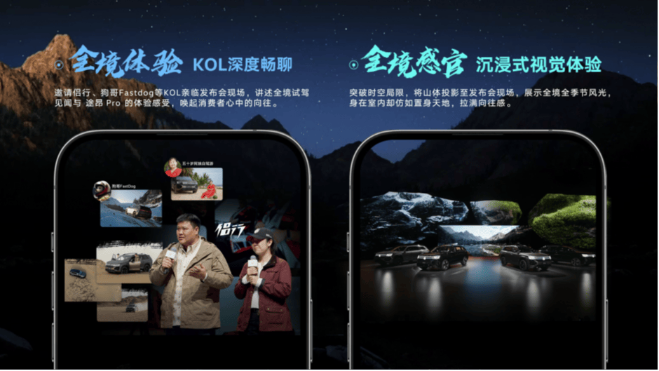全境体验KOL深度畅聊:邀请侣行、狗哥Fast dog等KOL亲临发布会现场,讲述全境试驾见闻与途昂Pro的体验感受,唤起消费者心中的向往。