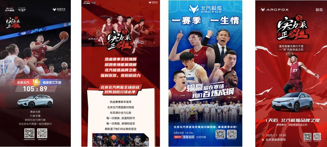 北汽集团继2023-2024赛季品牌冠名赞助合作之后,2025年北汽集团(极狐)再度与北京男篮联手,同时权益进行全面升级,借势本土知名体育项目的营销跨界,从线上推广及线上运营多维度提升品牌层面曝光及认知。