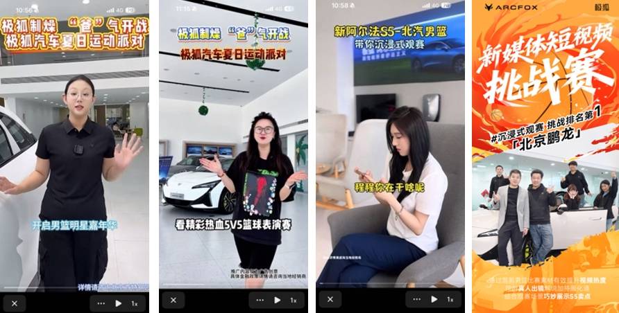结合北汽男篮精彩赛事,发动全网门店围绕新 S5 与赛事元素进行视频内容创作竞赛,共同为赛事造热,并通过多维传播内容提升品牌曝光。