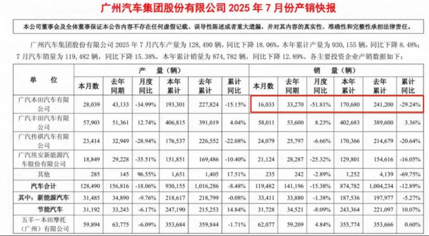 【7月销量同比腰斩!广汽本田7月销量仅1.6万余辆,李进离任,高洪祥担任救火队长!】日前广汽集团披露了7月销量情况,广汽本田以月销16033辆,同比暴跌51.8%的成绩领跌广汽集团各大品牌。而今年1-7月广汽本田累计销量为17万余辆,同比再跌29.24%,令人咋舌。