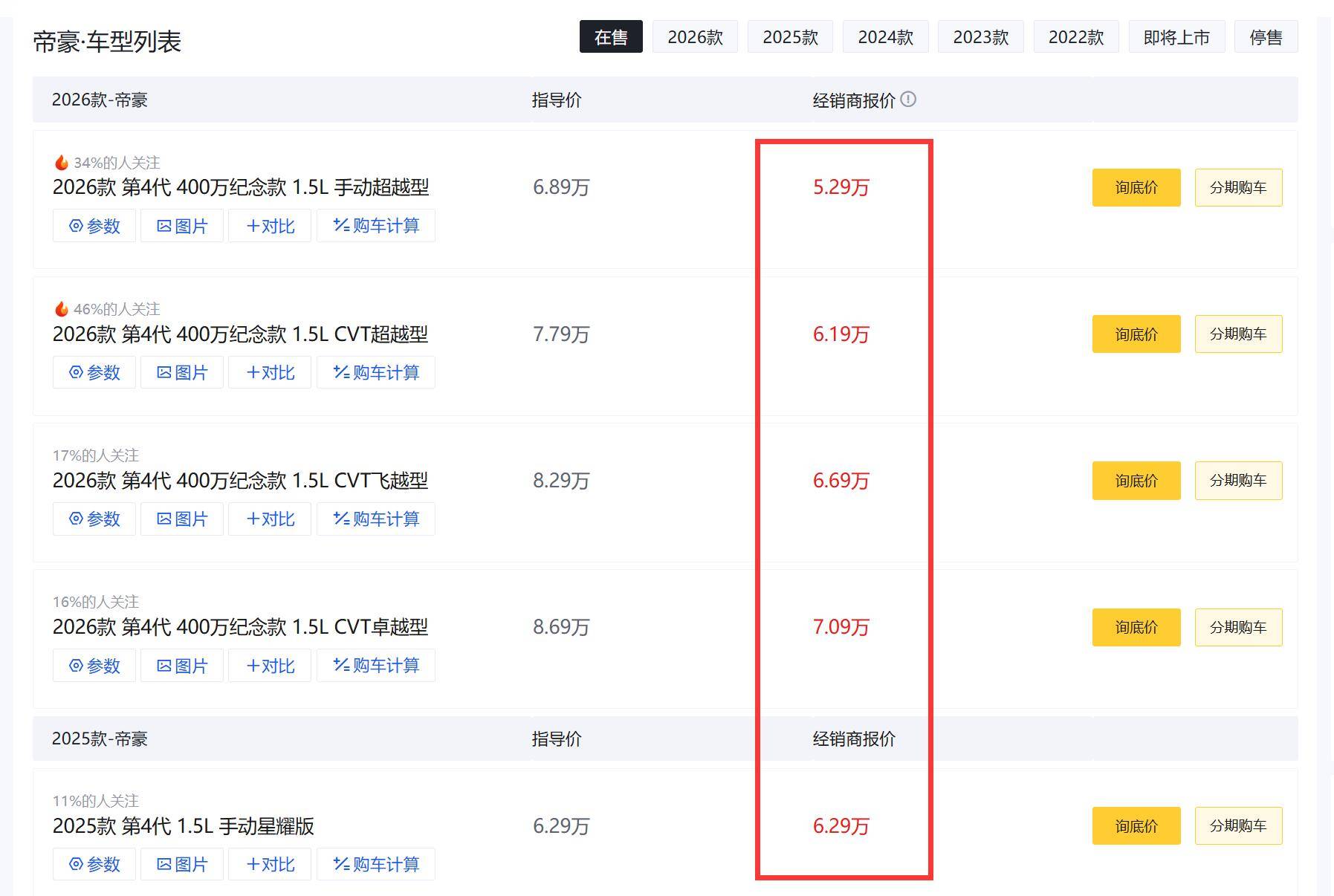 先来看现款吉利帝豪的车型优惠到底如何?从汽车网站市场行情中看到,现款车型优惠力度很大,这款车型部分地区最高优惠幅度达到1.6万元,对于起步价6万+的紧凑型轿车来说,这样的优惠相当可以,优惠后的购车门槛变得实惠、更实在。