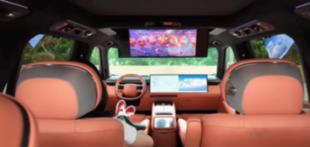 比如可以是办公书房:二排小桌板放下即是办公桌,后排娱乐屏秒变超高清投影仪;可以是移动客厅:三块大屏+移动中岛+冷热两用智能冰箱,看剧娱乐更惬意。
