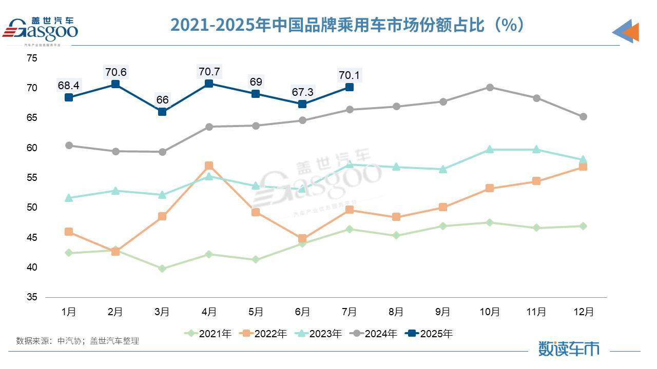 中国品牌乘用车市占率超7成,外资品牌格局分化