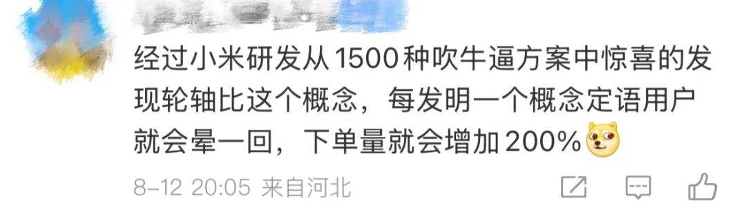经过小米研发从1500种吹牛逼方案中惊喜的发现轮轴比这个概念,每发明一个概念定语用户就会晕一回,下单量就会增加200%。