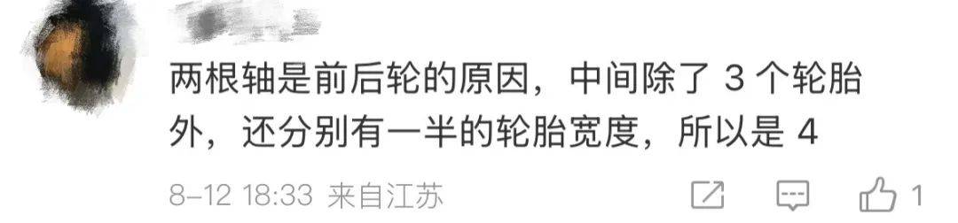 两根轴是前后轮的原因,中间除了 3 个轮胎外,还分别有一半的轮胎宽度,所以是 4。