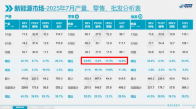 而另一边,根据乘联会数据,7月份在新能源整体市场还保持着12%的高速同比增长的同时,增程市场已经出现了11.4%的同比下降。这一数据如同一盆冷水,浇在了包括上汽、广汽、小鹏等众多押注增程赛道的车企头上。