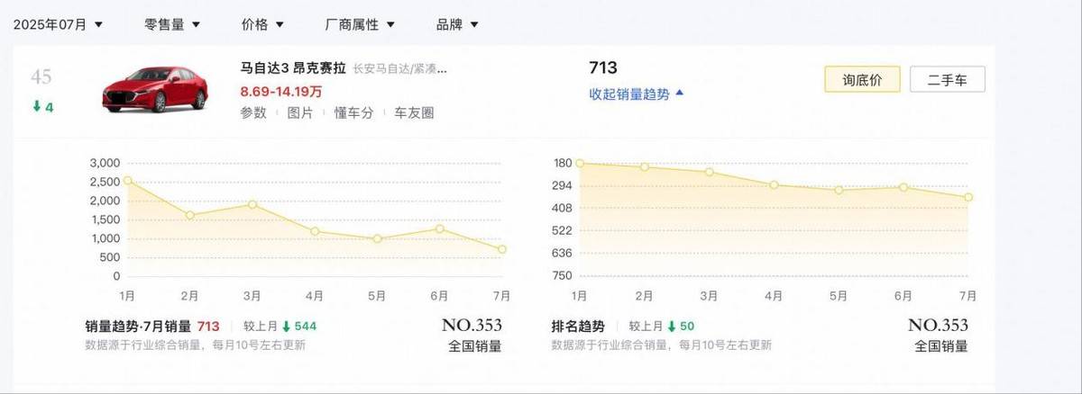 也就难怪,即使目前国内马自达3昂克赛拉在终端的最低价格已经来到了9万以内,但7月份它的销量数据却仍只有713辆新车进账。说白了,现在的国人买车肯定还是懂车的,至此也不禁让我们想问:马自达对待中国市场,何时能像对待北美市场一样如此地“热忱”和“殷勤”呢?恐怕,在我们有生之年都很难看到了吧,大家觉得呢?评论区里留言说说看。