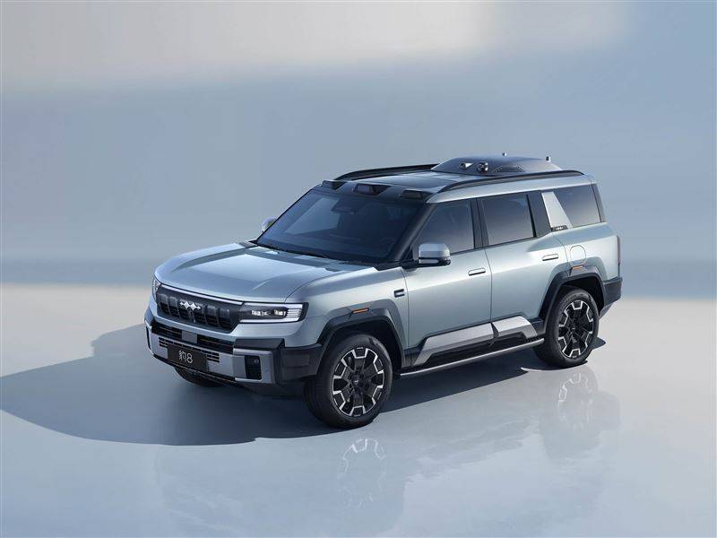 猛士M817的外观依然是比较夸张激进的类型,犹如机甲般的设计显得十分独特,犀利的灯组也进一步强化了凶狠的视觉效果,侧面外扩的轮眉充满力量感,车尾十字形灯组和大哥917有些类似,辨识度很高,外挂的方型小书包作为储物空间的拓展。豹8的造型更加城市化,前脸中规中矩,更长的车身长度也使得侧面看起来更加修长,车尾外露的备胎增添了野性。