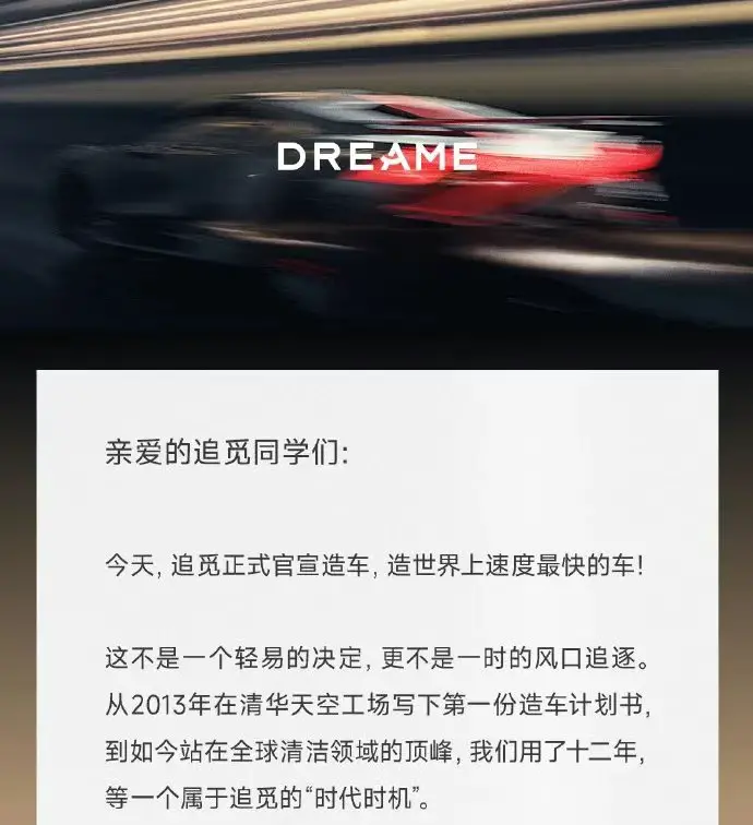 8月28日,追觅科技正式宣布进军整车制造领域,根据规划,首款超豪华纯电产品将对标布加迪威龙,计划在2027年亮相。其称将持续长期投入汽车领域,目前已组建了近千人的造车团队,且在持续扩张。