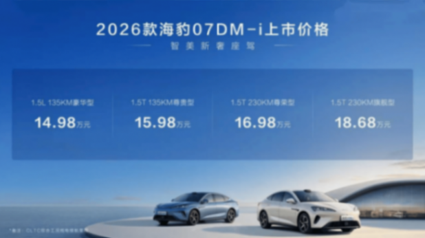 不过,这一格局正在悄然发生变化。9月15日,海洋网推出了2026款海豹07DM-i,官方指导价14.98万元至18.68万元。新车以“入门即满配”为核心策略,搭载第五代DM技术及“天神之眼”高阶智能驾驶辅助系统,在动力表现、底盘调校、智能科技和安全性能几个方面进行了全面升级,展现出较强的产品综合实力。