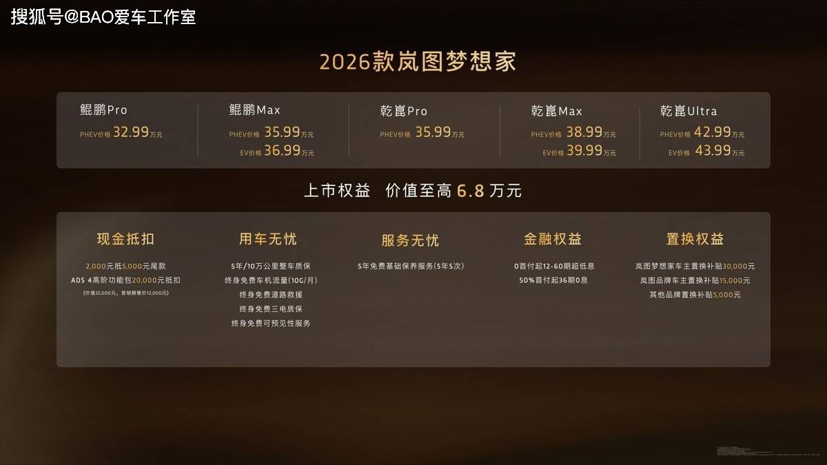 2025年9月15日,一场聚焦高端MPV市场的上市发布会如期举行——2026款岚图梦想家正式登场,不仅带来鲲鹏、乾崑两大智能化系列共五大配置版型,覆盖PHEV与EV两种动力模式,更以32.99万-43.99万元的官方指导价,以及“上市即交付”的用户承诺,直接打破高端新车“下单等车”的行业常态。当然,如果您问BAO师傅,这次产品焕新的亮点在哪里?那笔者能够给您的答案一定是2026款岚图梦想家是全球首个搭载了800V系统,且搭载了62.5度超大电池的PHEV车型。