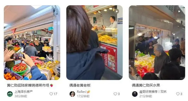 今日,大量网友拍到黄仁勋现身陆家嘴街道乳山路锦德菜市场,体验上海市井风俗,看起来挺平易近人。