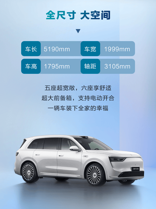 空间布局方面,5190×1999×1795mm 的车身尺寸和 3105mm 轴距,提供五座和六座两种选择。六座版第二排配备零重力座椅,支持 120° 零压角调节,长途乘坐也能保持舒适;五座版后备箱最大容积可拓展至 2460L,搬家、露营都不在话下。这种 “得房率” 高达 67.6% 的设计,在同级车型中堪称顶级,直接秒杀传统豪华品牌的空间利用率。