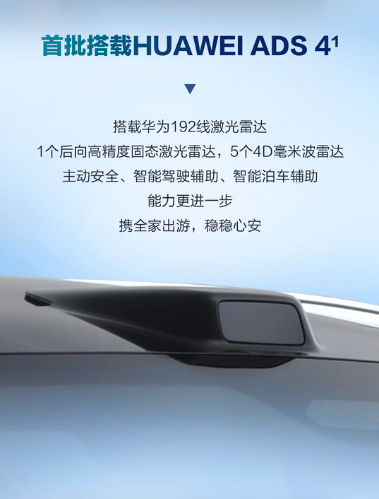 智驾系统是纯电版的核心竞争力。首搭的 HUAWEI ADS 4 采用全新 WEWA 架构,通过世界引擎生成各种复杂路况场景,端到端时延降低 50%,通行效率提升 20%,重刹率降低 30%。标配的 192 线激光雷达和后向高精度固态激光雷达,配合 5 颗 4D 毫米波雷达,实现全场景智驾覆盖。实际体验中,ADS 4 能精准识别 “鬼探头”、前车急刹等危险情况,主动安全性能大幅提升,相当于随车配备了一位经验丰富的 “安全员”。这种技术下放,让 40 万级车型也能享受到百万豪车的智驾体验,其他品牌看了估计得连夜开会调整产品策略。
