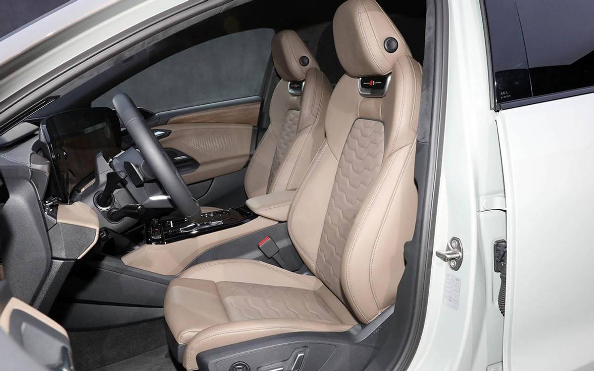 再来看内饰,讲真,奥迪A6L e-tron这车内布局其实就是在燃油版A6L的底子上加入了三块大屏,也是奥迪新时代下最新的内饰设计语言。可以预见到的是,像什么HUD抬头显示系统、带头枕扬声器的Bang&Olufsen品牌音响以及座椅加热/通风等功能应该都会有。