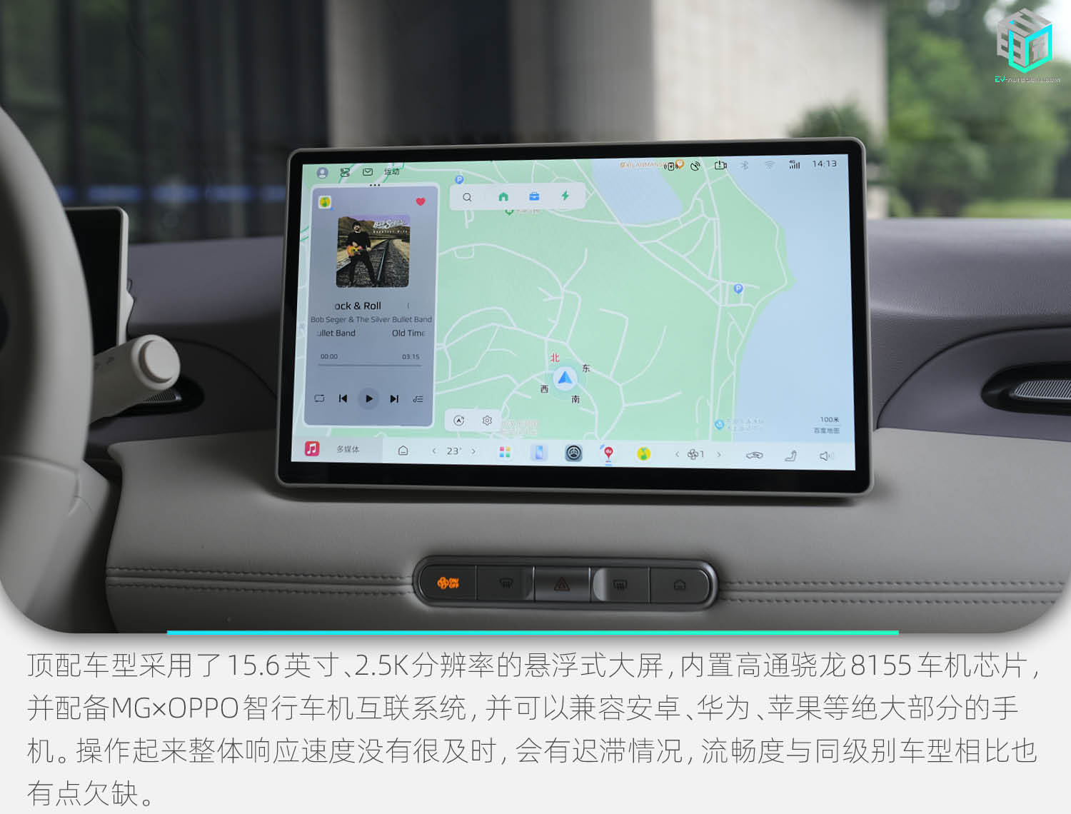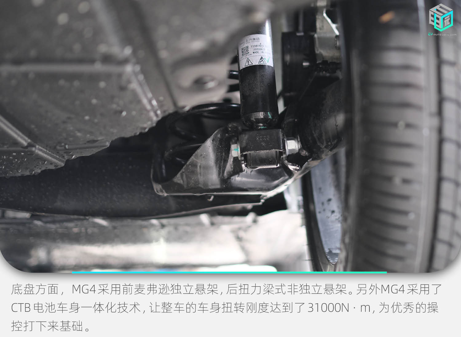 在城市中驾驶,MG4的底盘整体感强,显得厚重沉稳,面对路面接缝或者井盖等小的颠簸保留了一定的路感。遇到大的坑洼路段,车身没有非常明显的抛跳,悬架拉的比较及时,动作显得很干脆。