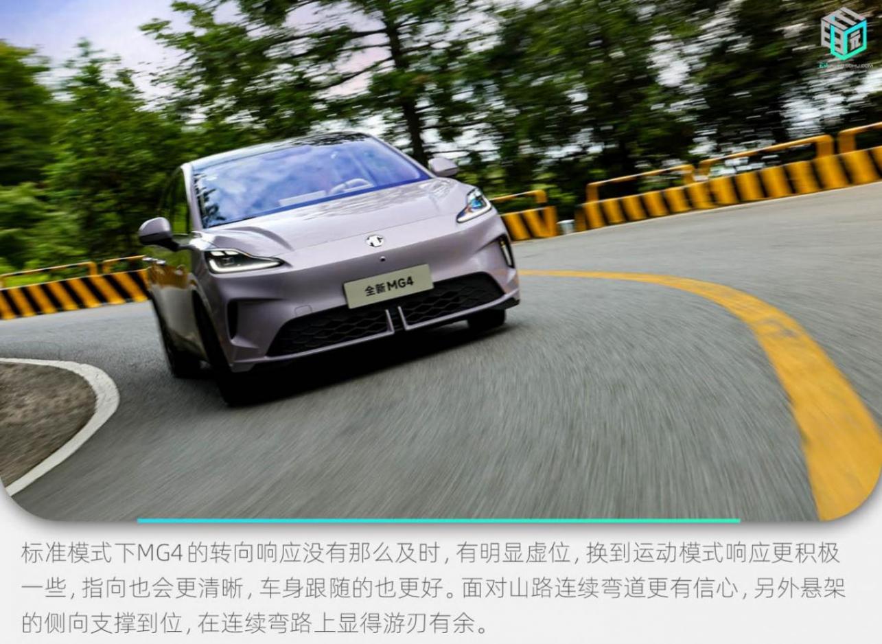 标准模式下MG4的动力输出比较保守,运动模式下的动力输出会更积极,不过也不会有突兀的推背感,整个输出会感觉到沉稳有力,也很线性,搭配上偏重的踏板脚感,调校都很偏向欧洲车。