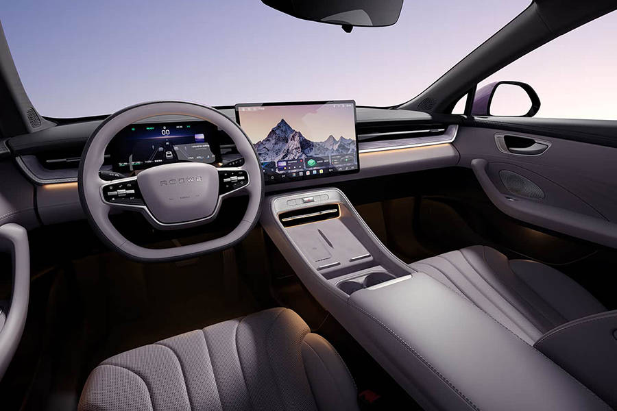 外观方面,新车采用大尺寸前格栅,内部辅以直瀑式镀铬元素进行妆点,搭配两侧分体式大灯组,有着不错的视觉感受。同时,其两侧较为夸张的导流槽设计,适当提升车辆的运动感。此外,该车首次加入“ROEWE”LOGO灯,夜间发光点亮后有一定的辨识度。