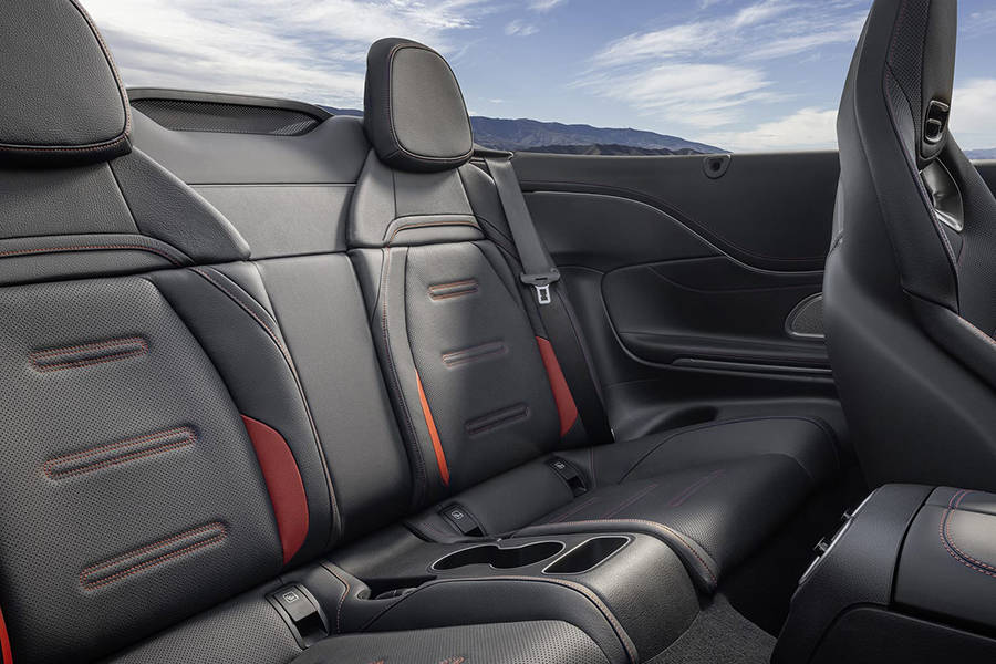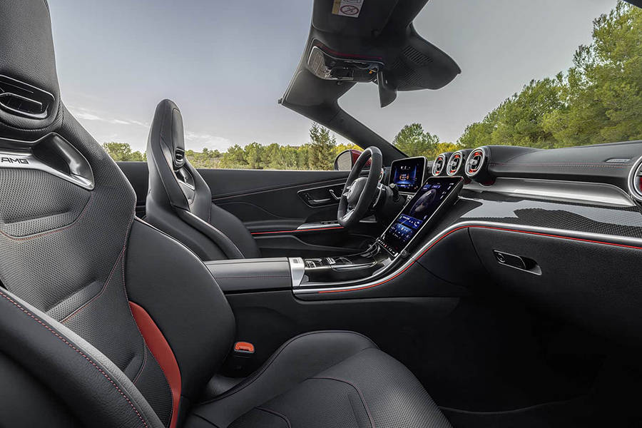 内饰来看,新车配备了12.3英寸中控屏以及11.9英寸全液晶仪表,车机系统拥有更多驾驶相关的AMG专属功能。车内相较普通版车型采用更多的碳纤维材质,搭配红色缝线,进一步增加战斗氛围。同时新车配备了AMG运动座椅,拥有更强的侧翼支撑,并且头枕还拥有暖风系统,能够在敞篷打开时让驾驶员和乘客保持温暖。