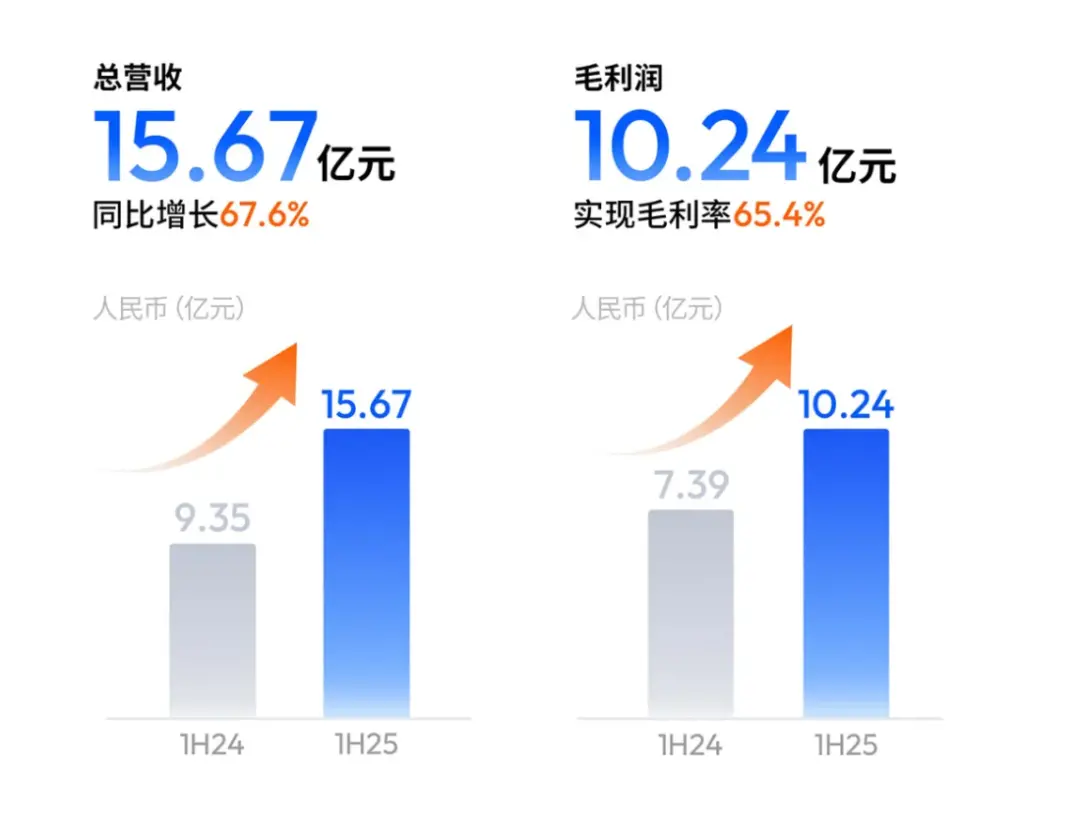报告显示,地平线仍处于高速增长期,处于增收增利阶段。地平线于2025年上半年实现营收15.7亿元,同比增长67.6%。其中,毛利润为10.2亿元,同比增长38.6%。