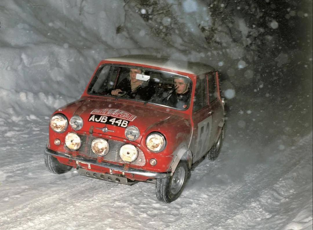 在这台纪念版车型上,每一个细节都在讲述1965年那场辉煌胜利的故事 。车身侧面的“52号车门拉花”,复刻了当年冠军赛车的编号;车头的复古英国车牌贴纸,则完美复刻了原版赛车的车牌“AJB44B”。C柱上的专属标识,清晰地标注着“纪念1965蒙特卡洛拉力赛60周年”;甚至连B柱的标识,也是为了致敬原版赛车的驾驶员。车顶的条纹、辣椒红的车漆、白色的合金进气口、特别版的轮毂盖……无数细节共同构筑了这台车的灵魂。