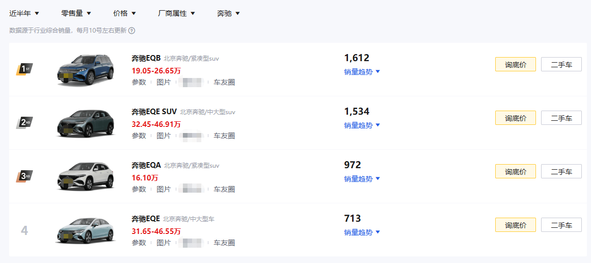 市场数据足以说明问题,2025年7月,EQE轿车与SUV合计单月销量甚至未能突破250辆大关,近半年销量也不足2500辆。这个数字甚至不及同价位Model S单月销量的三分之一,也不及的半数。在价格区间重叠的情况下,消费者用真金白银投票的结果,清晰反映了市场对EQE产品力的评判。