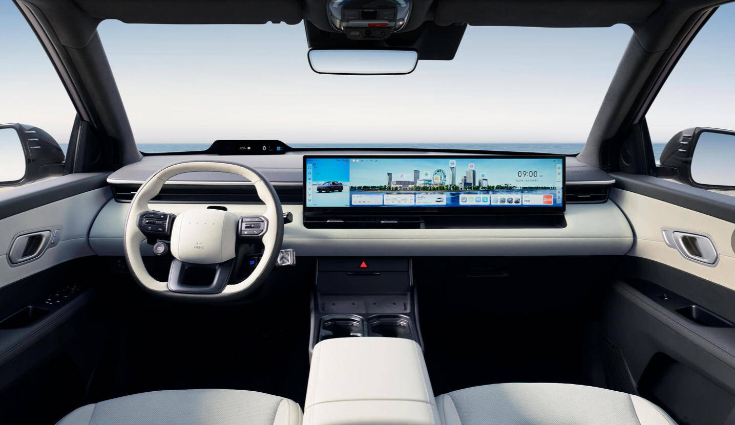 内饰方面,新车内饰采用极简的设计风格,从官图来看,新车内饰以白色为主色调,看上去更加简约、时尚。新车全系标配27英寸超薄双连屏,配合三辐式双色拼接方向盘,科技感十足。此外,新车还配备了双区无线充电,全车多达29处储物空间。